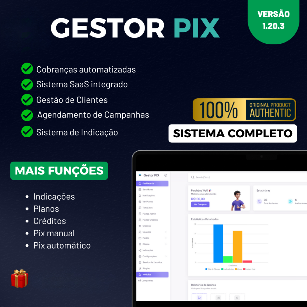A plataforma Gestor PIX é uma solução completa para gestão financeira que facilita o controle e a automação de cobranças recorrentes. Com ela, você pode gerenciar pagamentos, emitir faturas, criar planos de assinatura e acompanhar relatórios detalhados, tudo em um único painel intuitivo. Ideal para empresas que buscam simplificar a administração de cobranças e oferecer mais praticidade aos clientes.